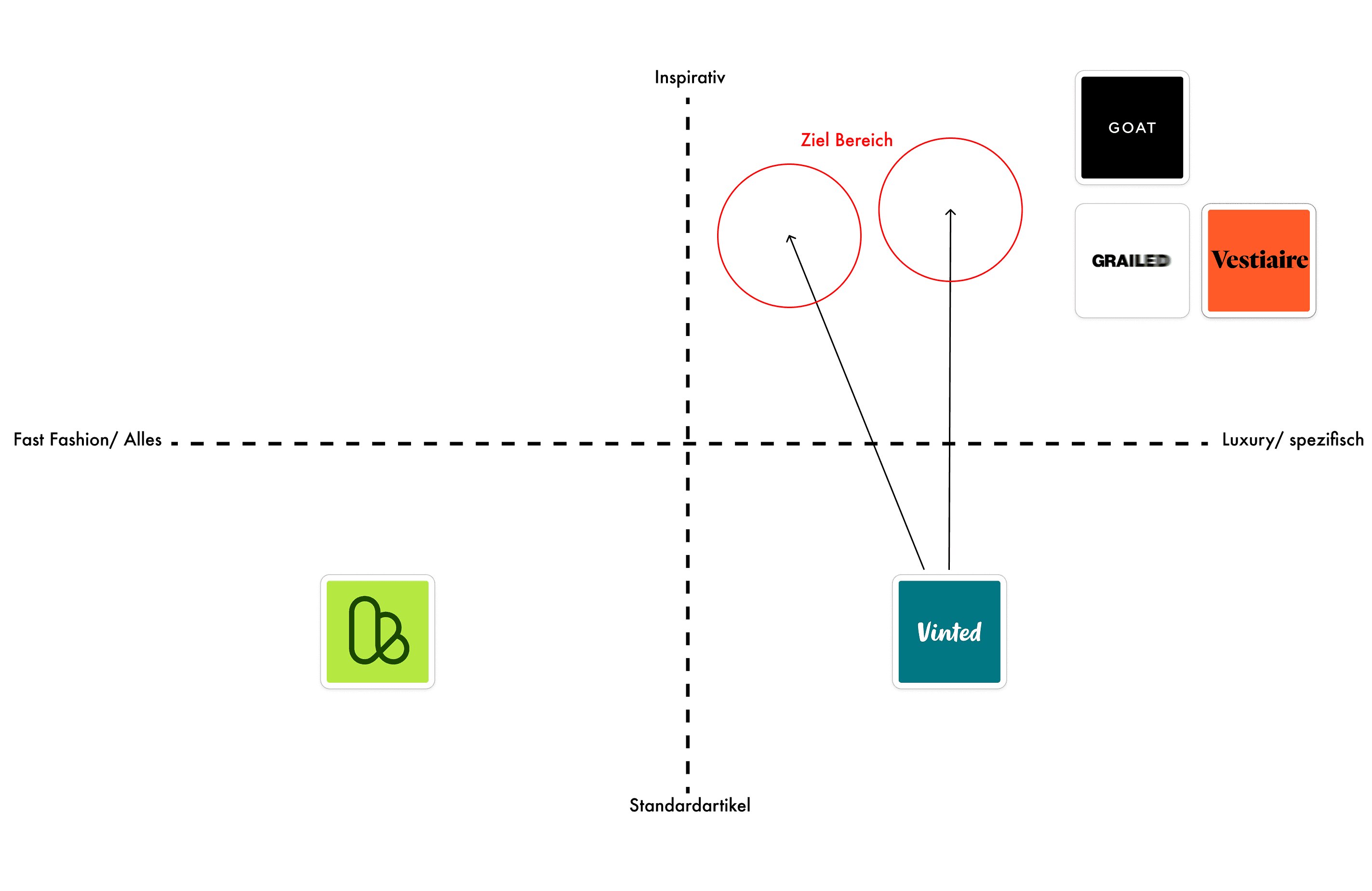 Im Research haben wir Vinted anhand einer Competitor Map im Vergleich zu ähnlichen Apps analysiert, um unsere Position im Markt zu bestimmen. Mittels einer Online-Umfrage haben wir Nutzer:innenfeedback zur aktuellen App gesammelt und zentrale Potenziale sowie Schwächen identifiziert. Aufbauend darauf führten wir 12 Interviews durch, die tiefere Einblicke in echte Nutzerbedürfnisse ermöglichten. Diese Daten nutzten wir, um fundierte Personas zu erstellen und durch gezielte Fragestellungen wie „How Might We“ konkrete Ansatzpunkte für die Lösungsentwicklung zu definieren.