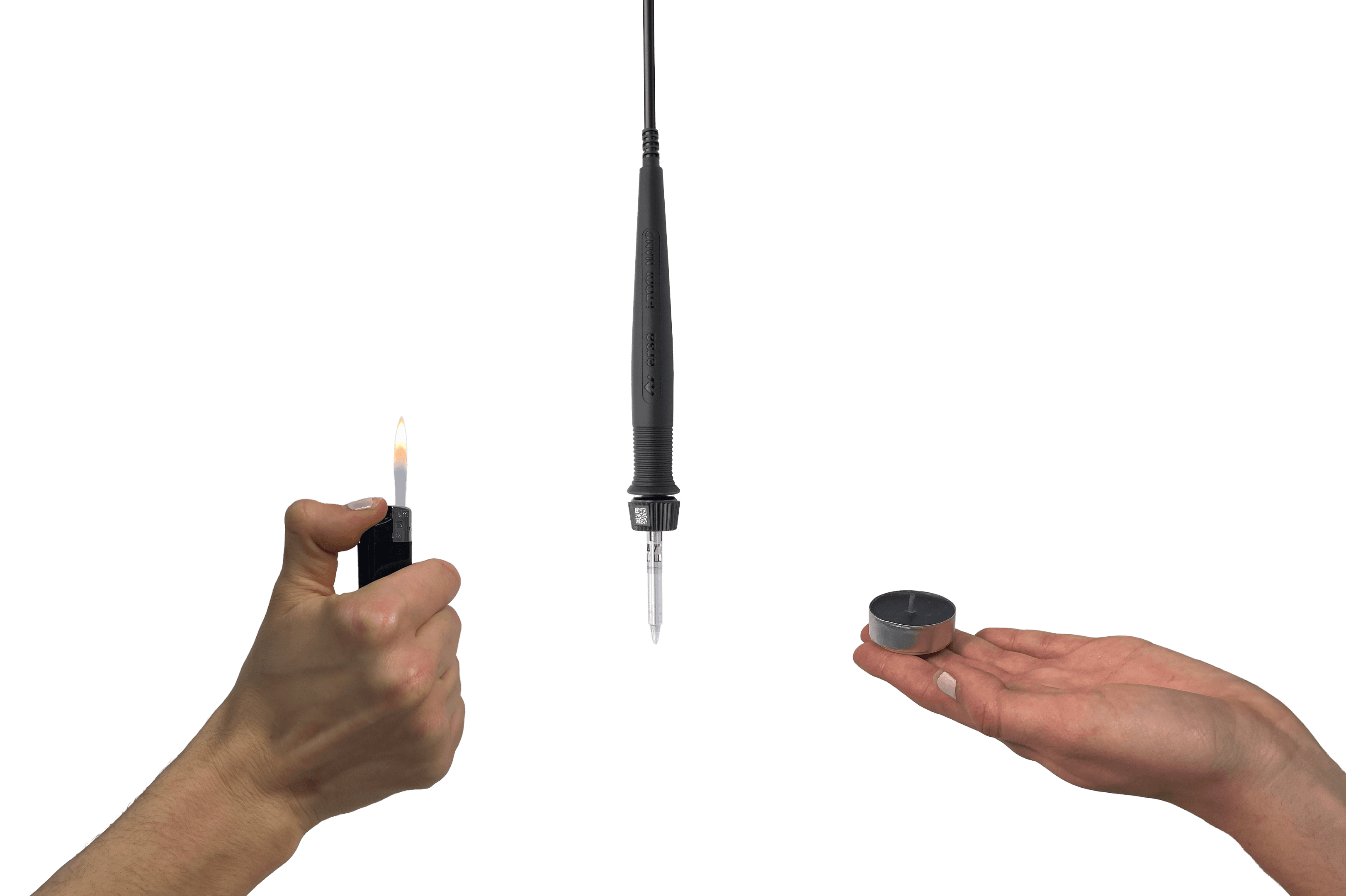 Unsere Grundidee war es, das Zeichnen mit Thermopapier und Hitze experimentell umzusetzen. Nach ersten Versuchen mit Lötkolben und Feuerzeug entschieden wir uns für eine offene Flamme als einfache, zuverlässig steuerbare Hitzequelle. Die erzeugten Flecken sollten organisch und individuell entstehen, wobei der „Hot Dot“ diese Wirkung durch gerandomisierte Steuerung des Arms und der Hitze entfaltet.