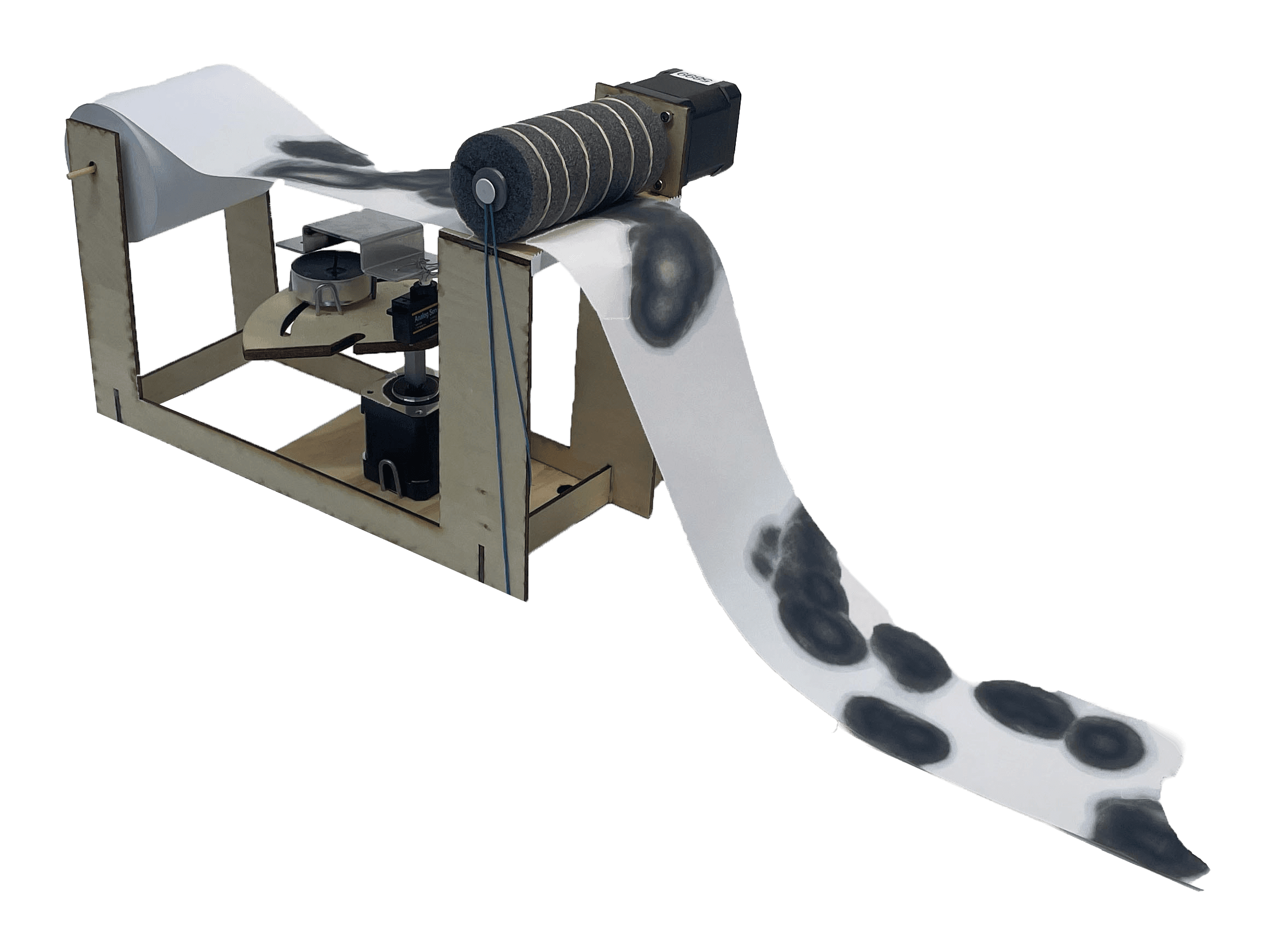 Ein experimenteller Prototyp, der mithilfe von Hitze und Thermopapier zufällige Muster erzeugt.